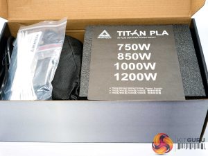 Montech ship the Titan PLA 1000W in a black box with a high resolution image of the power supply on the left.