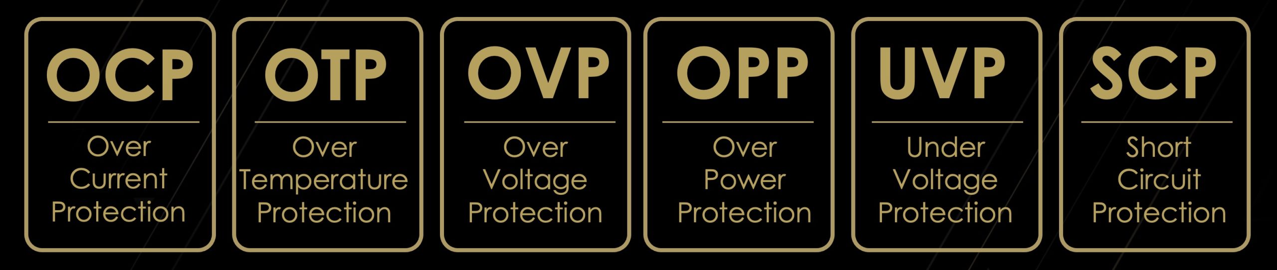 - Industrial level protection with OCP,OVP,OPP,OTP, SCP,UVP