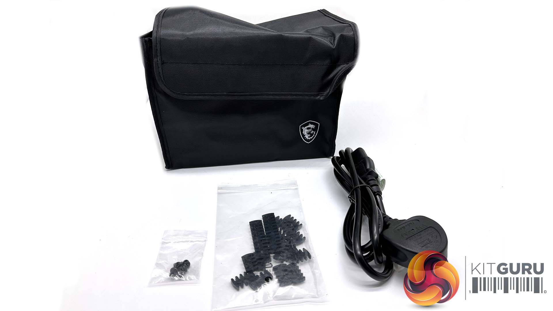 Inside the outer box is a bag of cables and accessories and the power supply itself, wrapped in a plastic bag, sandwiched between two pieces of foam.