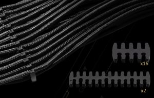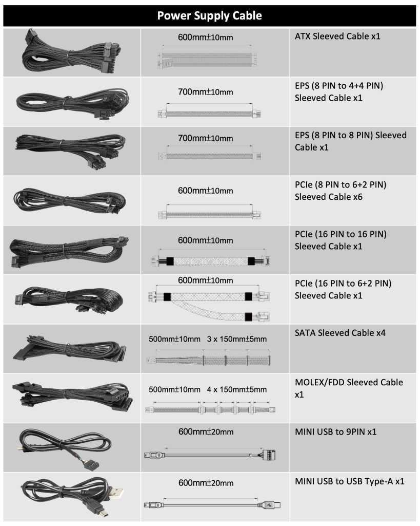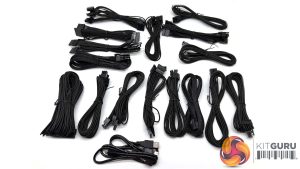 The cables are a mixture of sleeved and custom sleeved to fit into a variety of builds. MSI also supply a MINI USB to USB cable as this power supply can be controlled via MSI software.