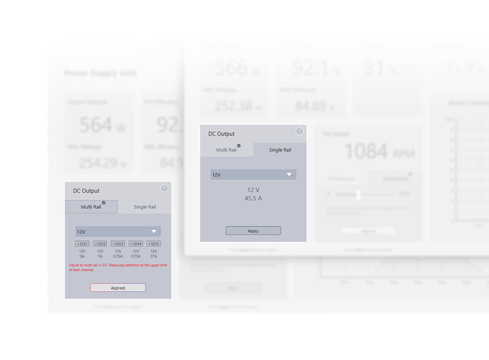 Instead of having a physical switch on the rear of the power supply to toggle between multi rail and single rail, you can control this via the software itself.
