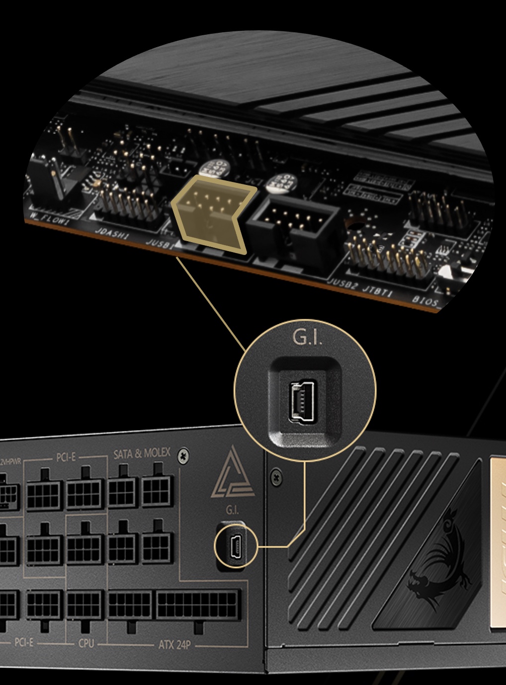MSI call this ‘G.I' (Gaming Intelligence) support. I can't say I really have had great experiences with the MSI software in the past and sometimes it would crash on the test system I used, but the software for the power supply seems to show everything that MSI claim.