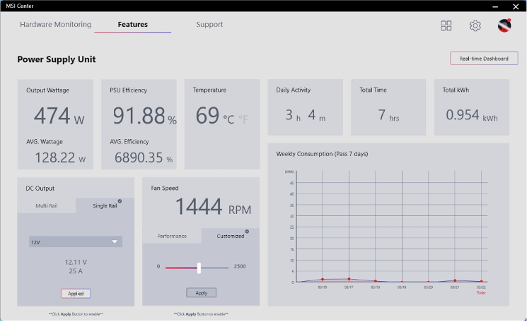 MSI's real time power monitor works via the MSI Center app and is useful if you wish to monitor power supplied to the system.