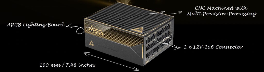 The power supply measures 190x150x86mm – the other 1250W, 1000W and 850W units in this specific range are smaller with 150x150x86mm dimensions. While 190mm is rather long, this is smaller than the Seasonic Prime TX1600 Noctua Edition supply that we reviewed back in December last year (210mm).