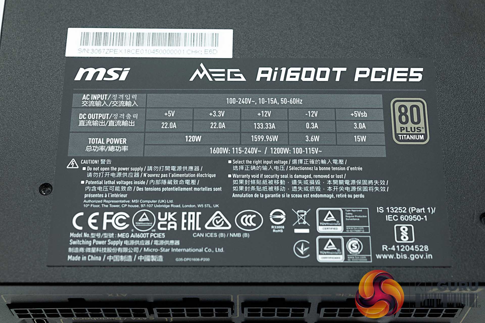 The Ai1600T power supply is able to deliver 1599.96W on the +12V rail (133.33A), and 22A on both +3.3V and +5V minor rails. This is an extreme level of power that will cope with any hardware available on the market for a consumer driven enthusiast system.