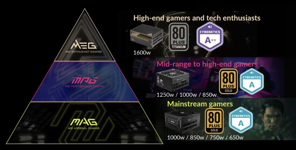 So, for clarity, the ‘MEG' range is ‘Enthusiast Gaming' sector in the high end, with the aforementioned £600 Ai1600T filling that slot. The supply we are testing today falls into the MPG ‘Performance Gaming' sector and the lower end 1000w/850w/750w/650w units fill the MAG ‘Arsenal Gaming' sector.