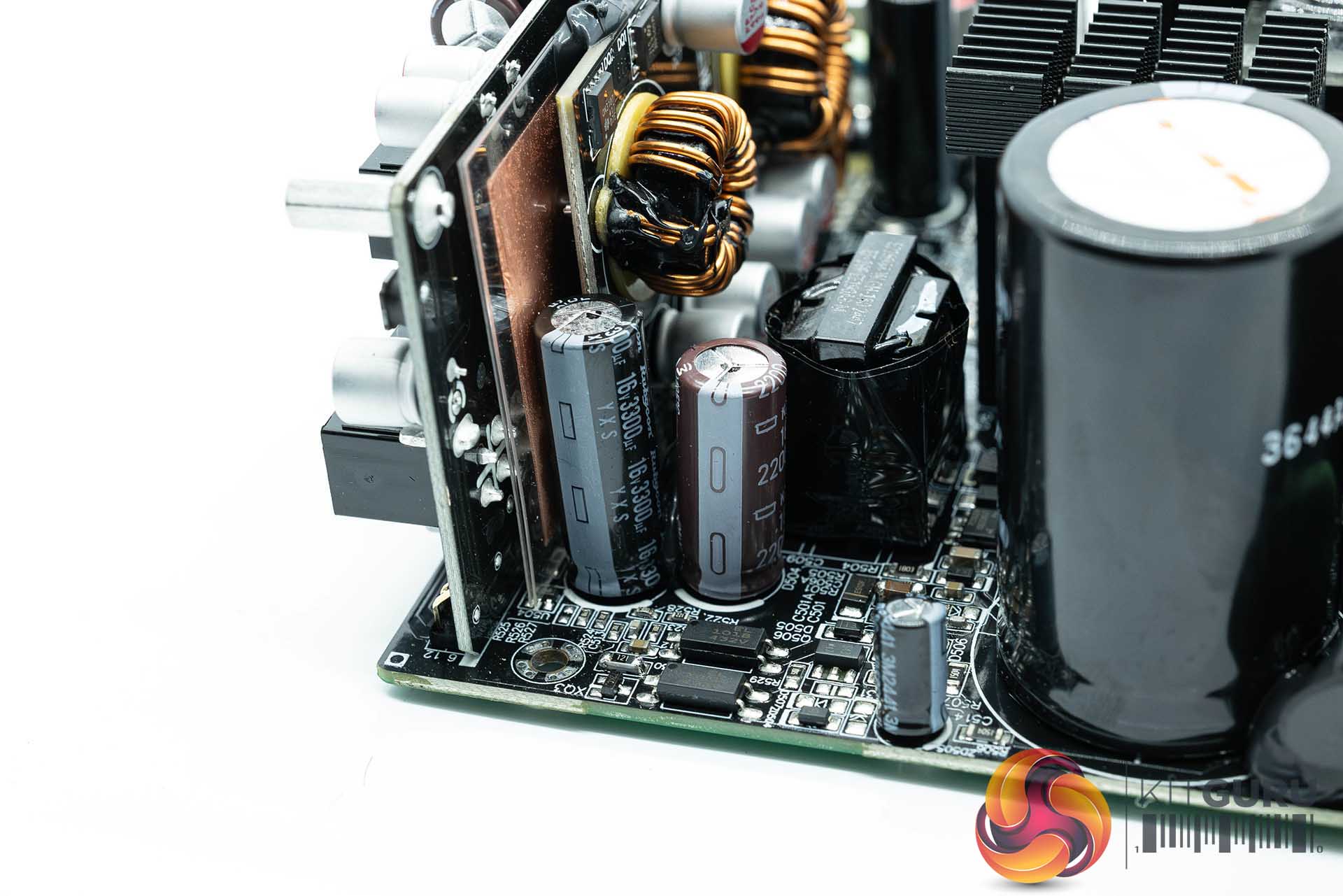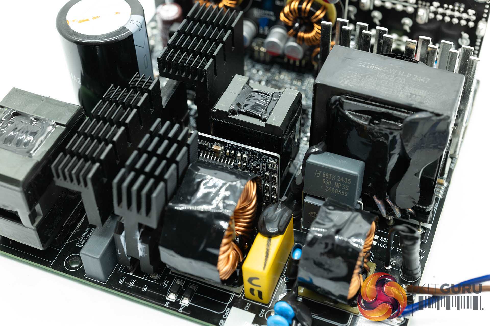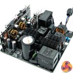 This PCB is significantly smaller than the one inside the MSI Ai1600T unit we reviewed a short while ago. There are multiple heatsinks inside to help remove excess heat, which would be needed more in this unit than a Platinum or Titanium rated design.