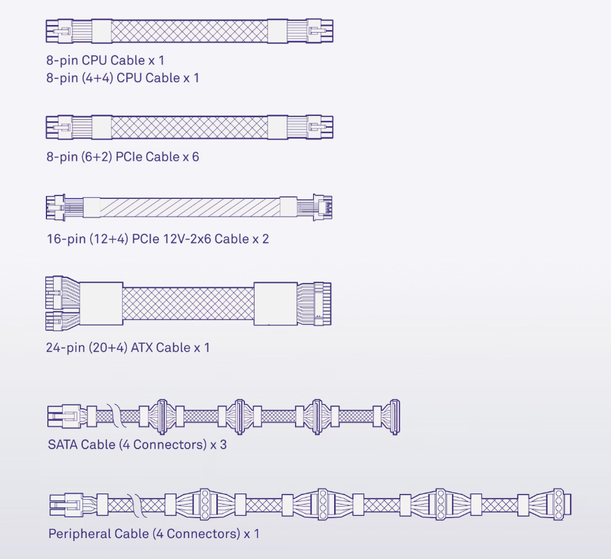 Inside the purple along with the cables are mounting screws and a regional C19 power cord. There are plenty of cables included to cover all bases.