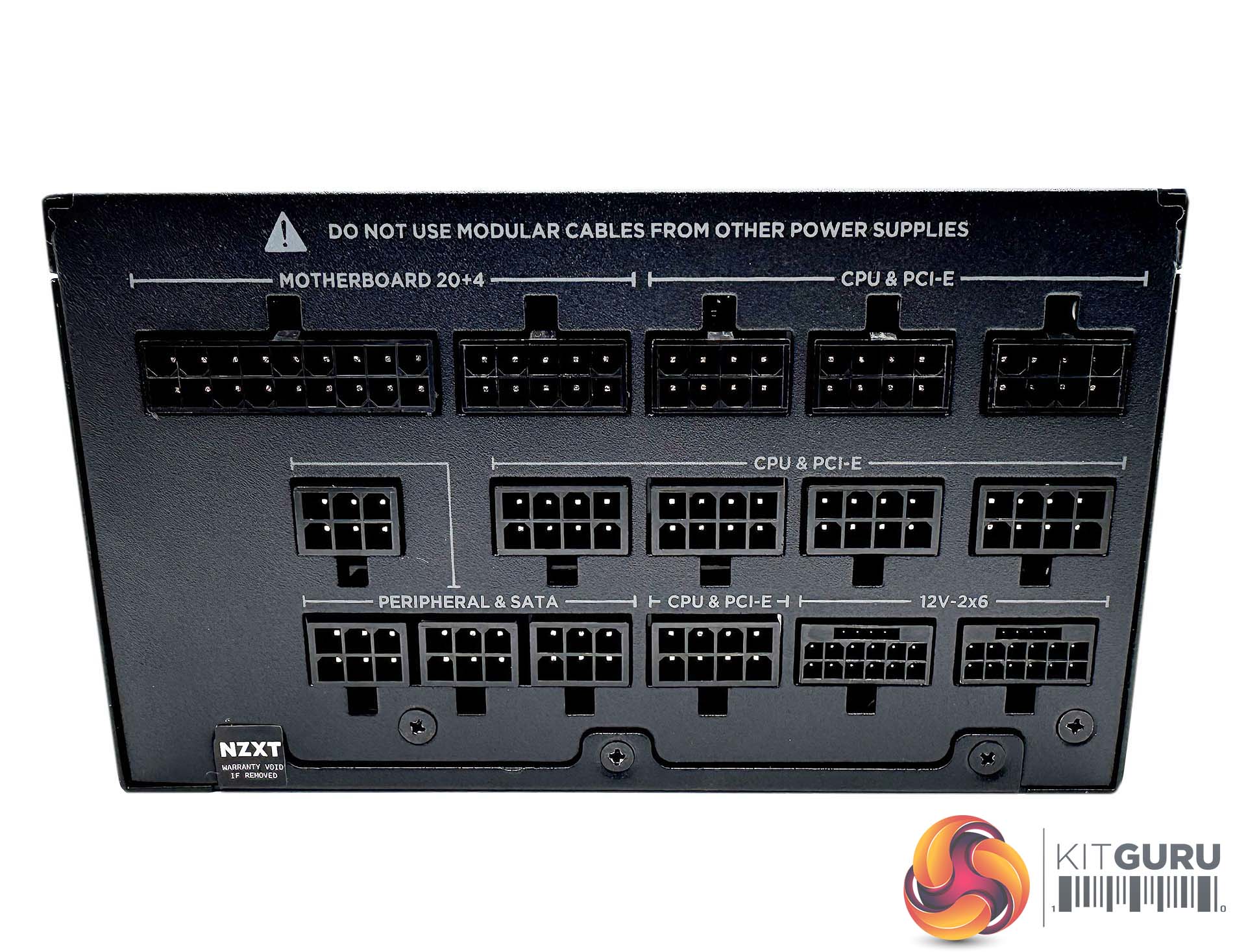 The reverse side of the PSU is home to the modular bay which is split across three rows, all cleanly labelled for ease of use during the installation phase of the build. There are two 12V 2×6 connectors bottom right of the bay.