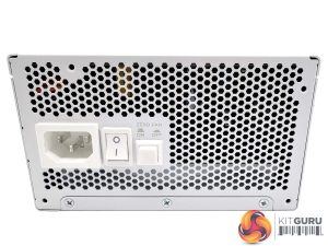 On the other side is a power connector slot, a power switch and a zero fan button. This switch enables the fan to be disabled under lighter loads, until a specific temperature is reached.