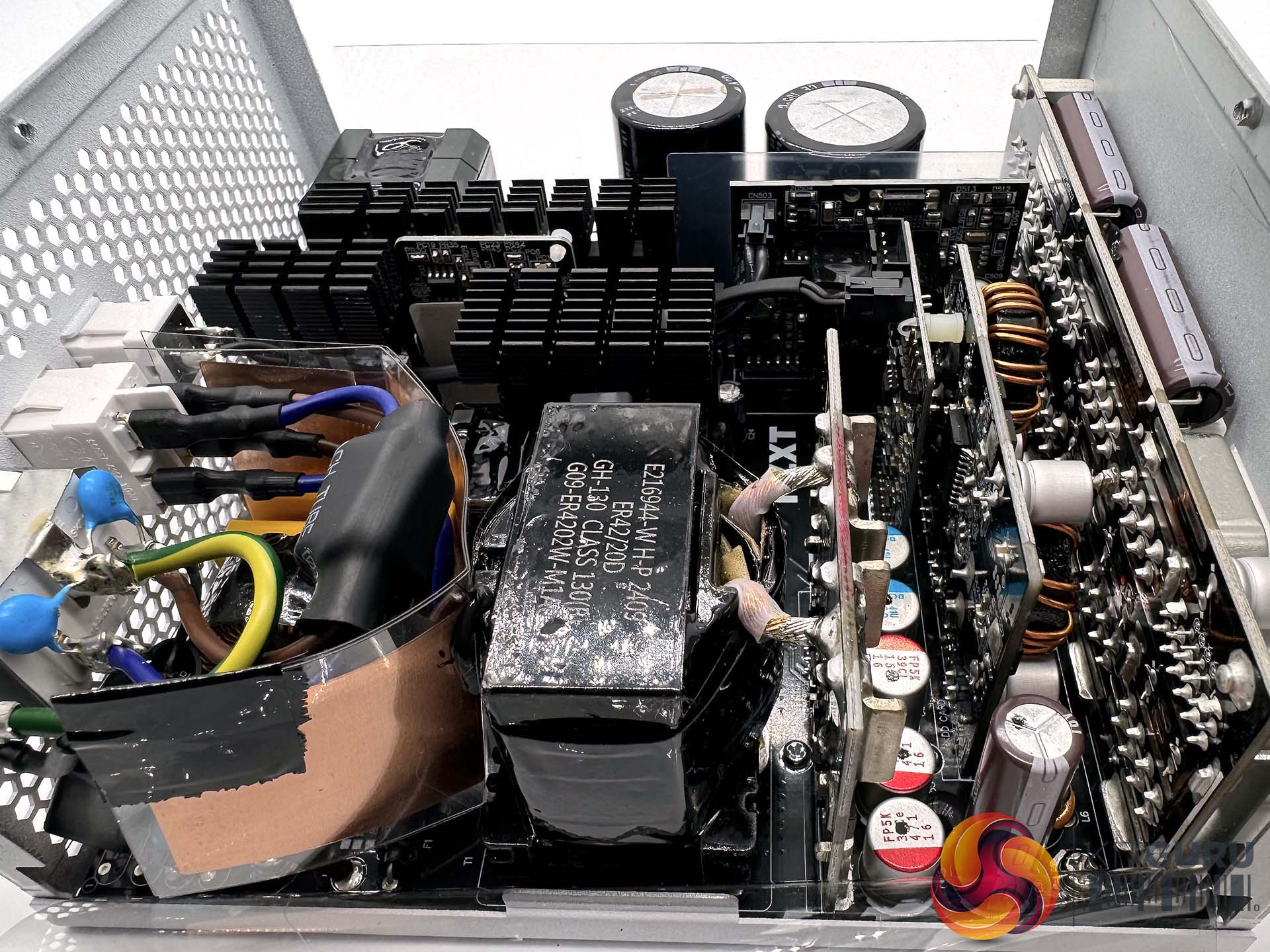 NZXT are using CWT as their OEM of choice for this unit. It is a fairly common place design – a half bridge topology on the primary side with an LLC resonant converter. On the secondary side a synchronous system rectifies the 12V rail via Infineon FETs along with DC-DC converters to generate the minor rails.
