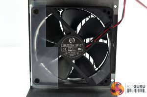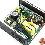 The Riotoro Enigma 850W G2 power supply uses a Hong Hua Fan (Model: HA1225H12F-Z). This unit is built around a Fluid Dynamic Bearing for quiet operation and long life. It is rated 0.58A, at 12 VDC. Maximum speed is rated at 2,200rpm, producing 73.9CFM at 32.4dBa. You will notice the unusually cut plastic cover along the left side of the fan – this is to direct the air flow at specific parts of the power supply underneath. Yes, its the same fan that we saw inside the Seasonic FOCUS PLUS Gold (FX) 850W power supply.