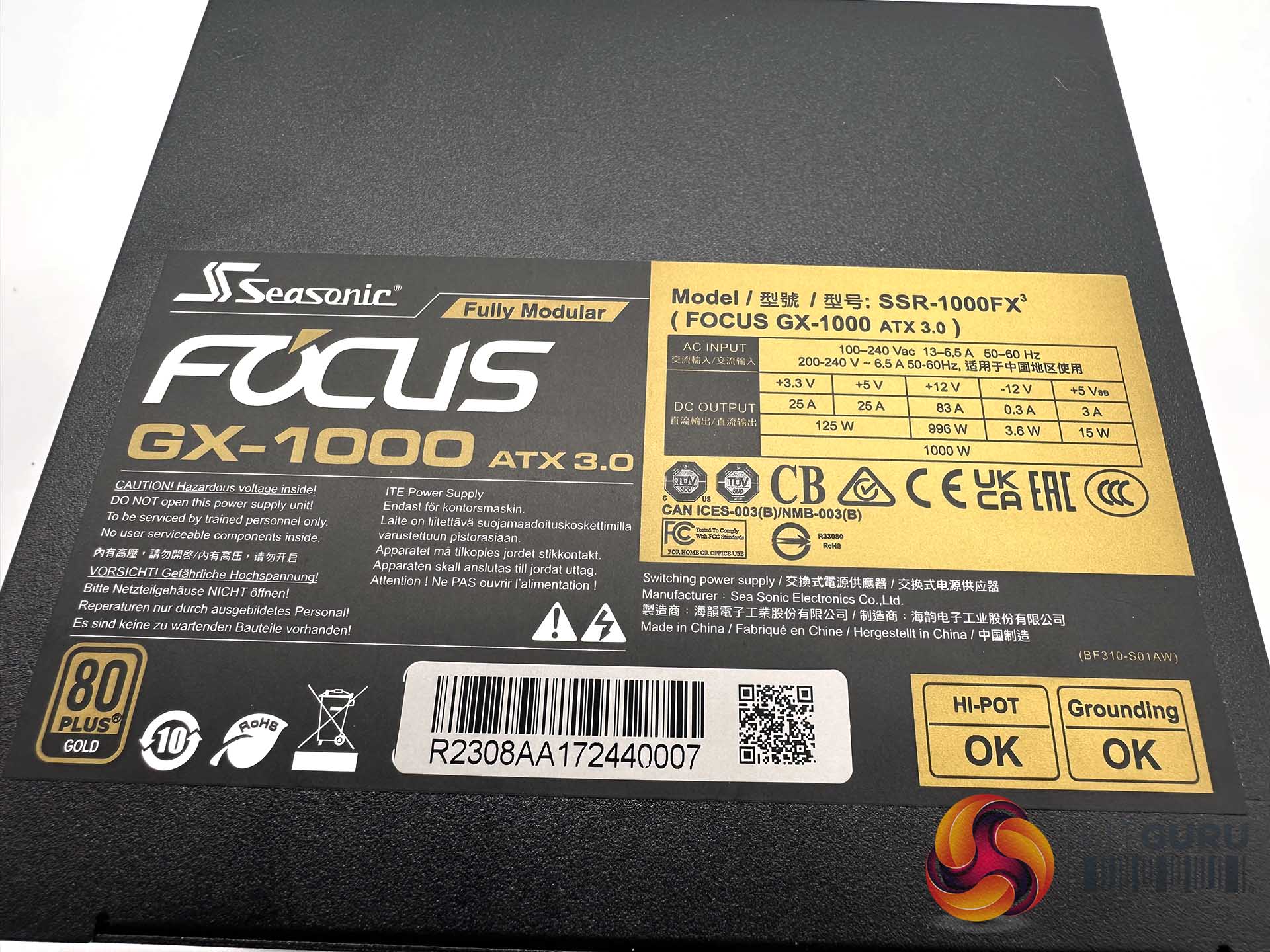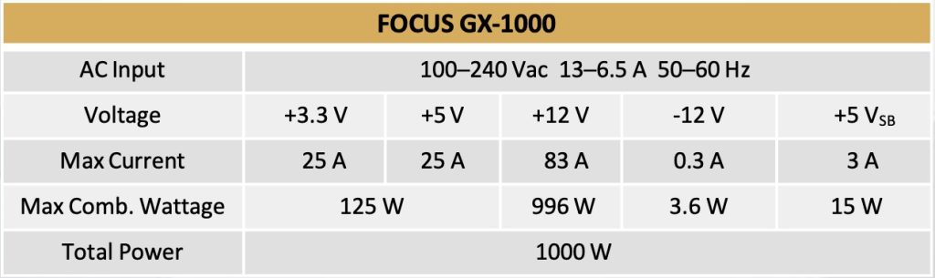 The 1000W unit is able to deliver 83A to the single +12V rail, with 25A to both +3.3V and +5V output.