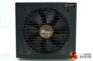 The fan guard is a straight metal grill with Seasonic branding in the middle. Seasonic are using a large 120mm fan, and we will get a closer look at this when we open the chassis later in the review.