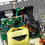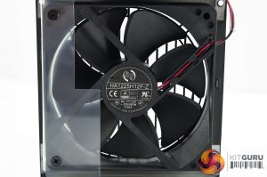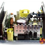 Seasonic are using a high grade Hong Hua fan (Model: HA1225H12F-Z). This unit is built around a Fluid Dynamic Bearing for quiet operation and long life. It is rated 0.58A, at 12 VDC. Maximum speed is rated at 2,200rpm, producing 73.9CFM at 32.4dBa. You will notice the unusually cut plastic cover along the left side of the fan – this is to direct the air flow at specific parts of the power supply underneath.