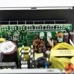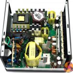 Seasonic are using high grade Japanese capacitors throughout the build with a single 105c rated Nippon Chemi Con positioned in the primary stage. This is rated 400v 650uF. Interestingly Seasonic have adopted two primary capacitors in their earlier higher cost PRIME units. The Prime 850W Platinum for instance uses two Nippon Chemi Con capacitors at 400v 330uF each, for a total of 660uF output. The Seasonic Titanium 850W unit is ridiculously over specified – fitted with two Nippon Chemi Con 650uF and 450uF capacitors to output 1100uF!