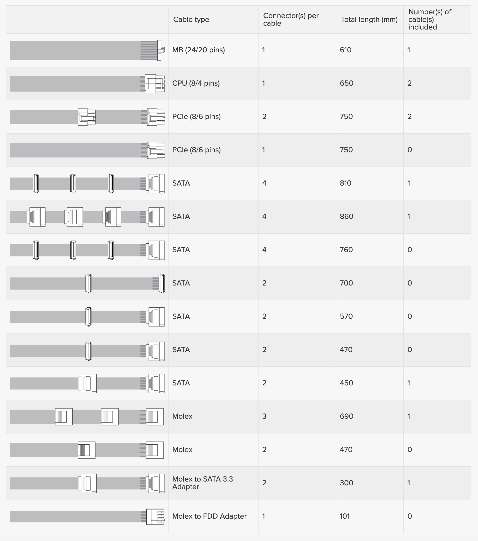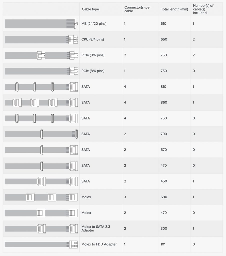 The modular cables are all flat ribbon style for ease of routing, apart from the main ATX cable which is sleeved.