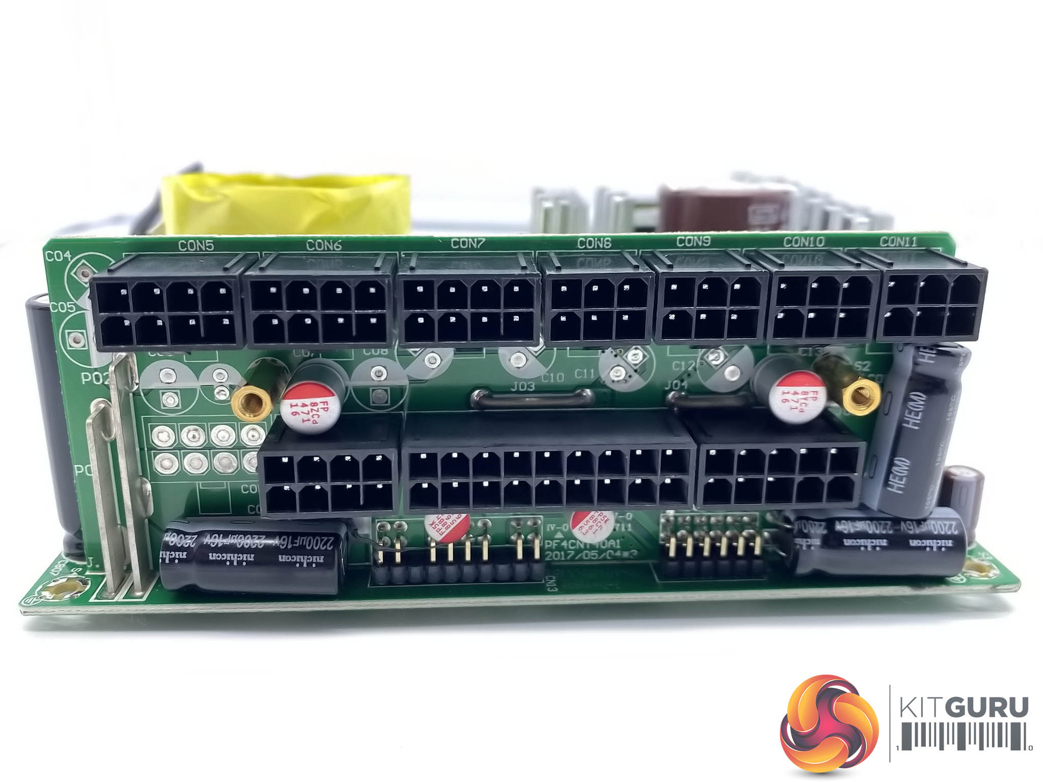 This design is a full bridge topology on the primary side along with an LLC resonant converter. On the secondary side FET's installed on the PCB's solder side rectify the +12V rail. Minor rails are generated through a couple of DC-DC converters.