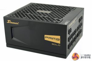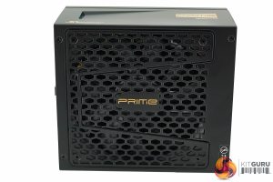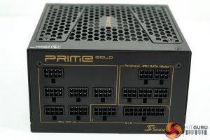 The Prime logo on this GOLD rated power supply is different than the other ranges, again with a gold coloured brand name showing. There is no coloured ‘N shaped grill' attached either, with Seasonic opting for a plain black appearance.