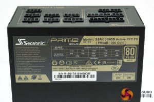 Above we can see the specifications of the power supply. The Model number is SSR-1000GD Active PFC F3
