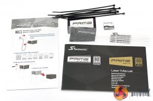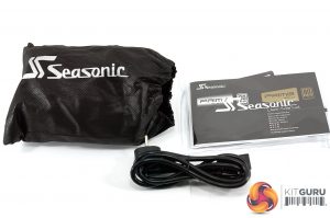 Seasonic fully load this box with a wealth of extras. You get a modular cable bag, resealable plastic wallet, regional specific power connector, two kinds of cable ties, a case badge, branded sticker, an installation guide, mounting screws and user manual.