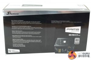 The same shiny box as all the other units in the range. We see a 10 year warranty sticker bottom left. This has however recently been upgraded to a whopping 12 years which is the best in the industry. You can read about the 12 year Seasonic warranty upgrade (HERE).