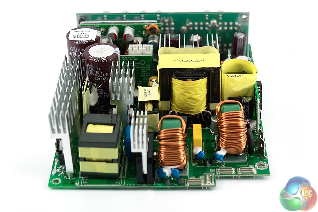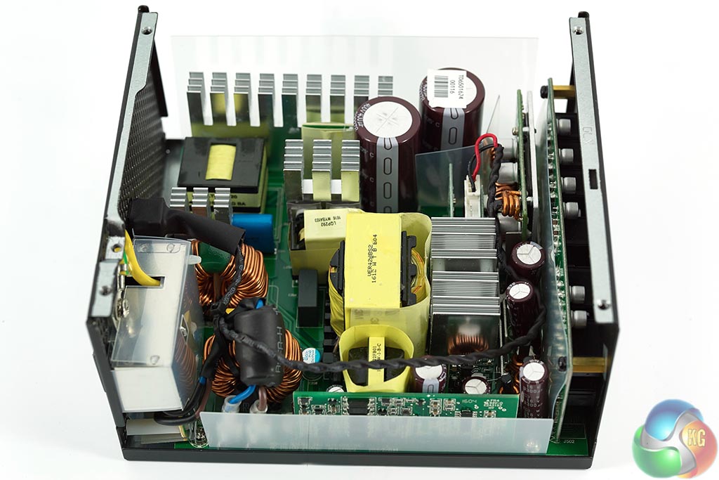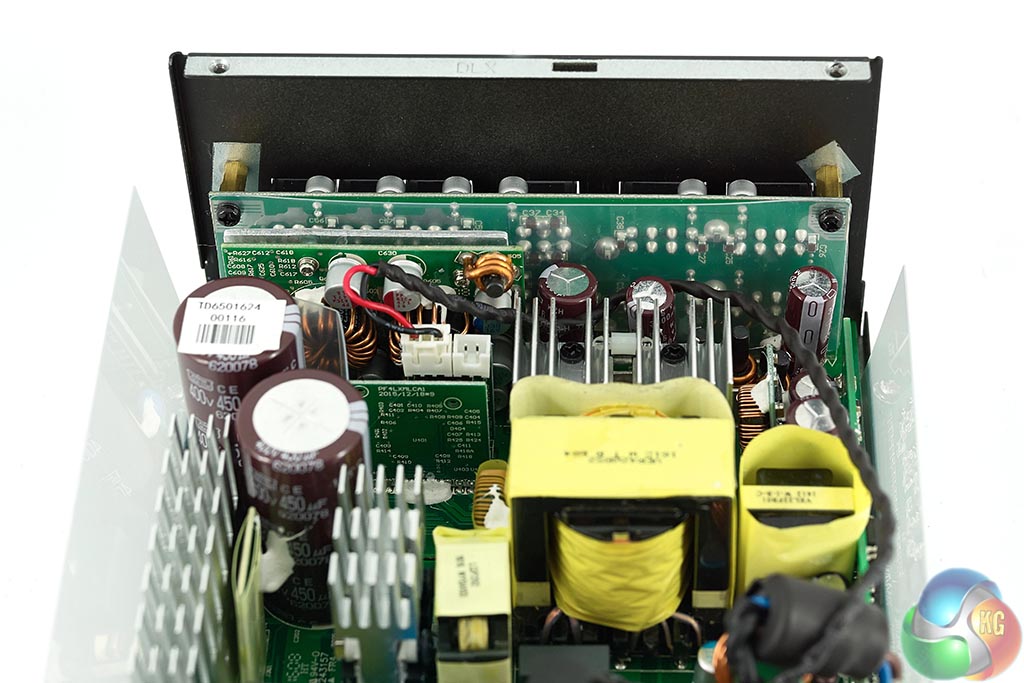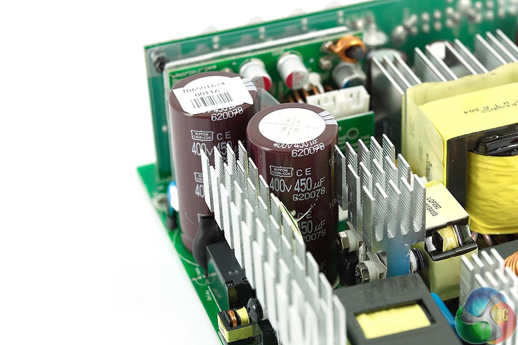 The 750W Prime is served by two 105c Nippon Chemi Con capacitors rated at 400v 560uF and 400v 450uF (for a combined total of 1010uF). The 850W Prime is served by two 105c Nippon Chemi Con capacitors rated at 400v 650uF and 400v 450uF (for a combined total of 1100uF).