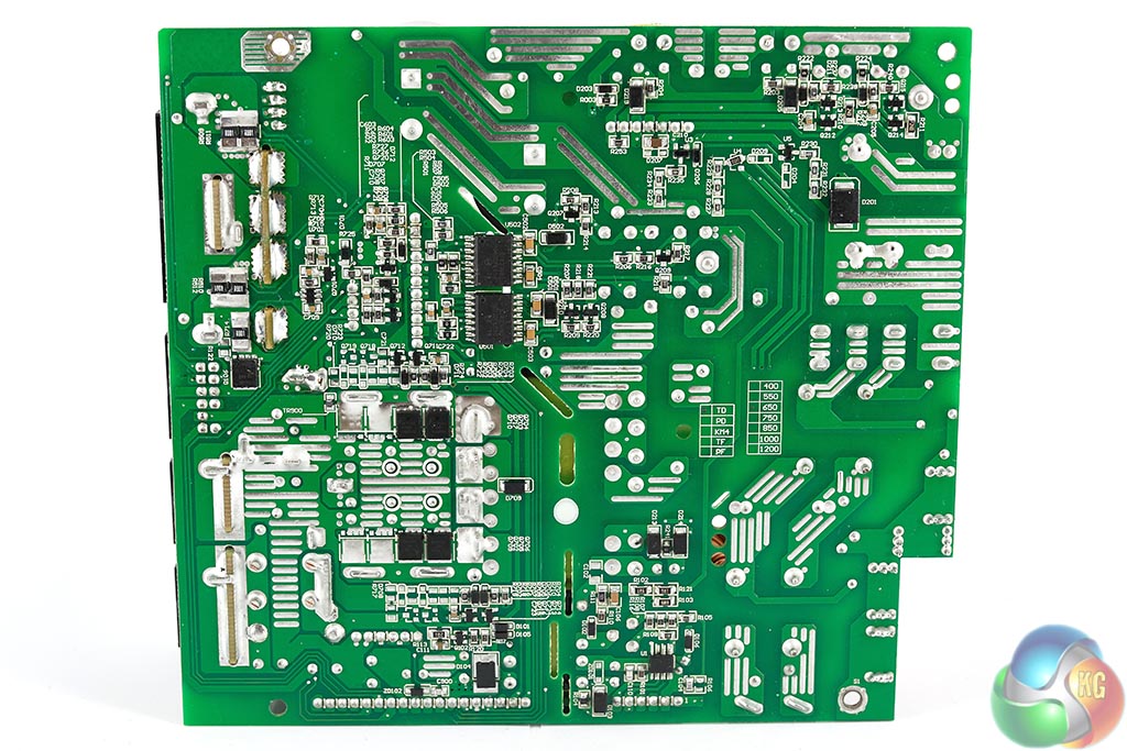 The soldering quality throughout is top drawer and it is clear that Seasonic have succeeded in reducing system clutter thanks to their new internal cable free connection design. There is a copper plate connecting the back panel to the main PCB to increase reliability and improve performance. They are increasing their use of paste solder throughout the design for quality reasons.