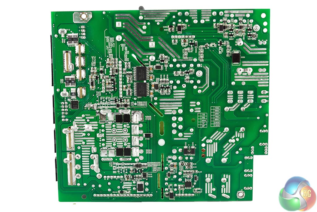 The soldering quality throughout is top drawer and it is clear that Seasonic have succeeded in reducing system clutter thanks to their new internal cable free connection design. There is a copper plate connecting the back panel to the main PCB to increase reliability and improve performance. They are increasing their use of paste solder throughout the design for quality reasons.