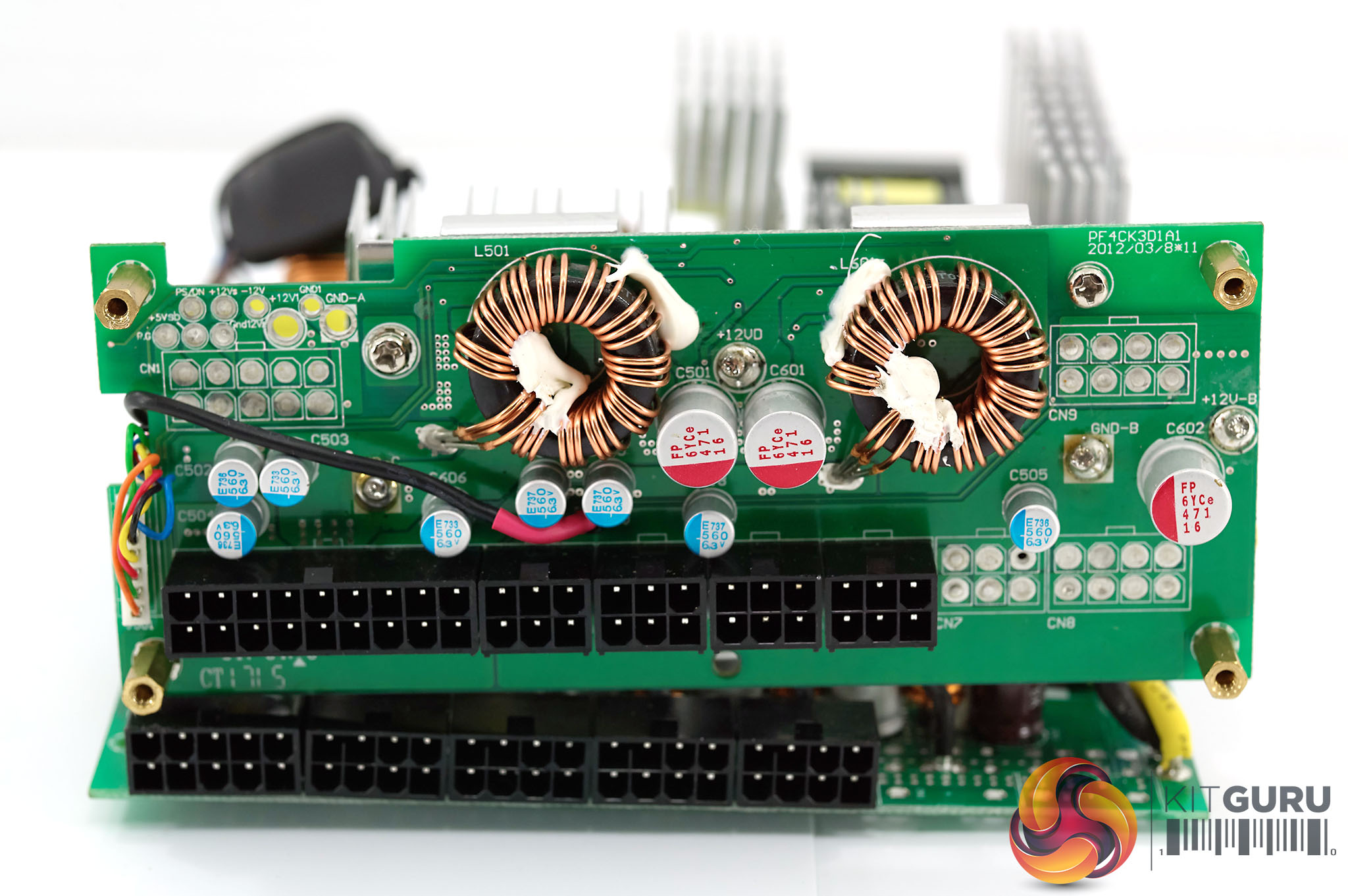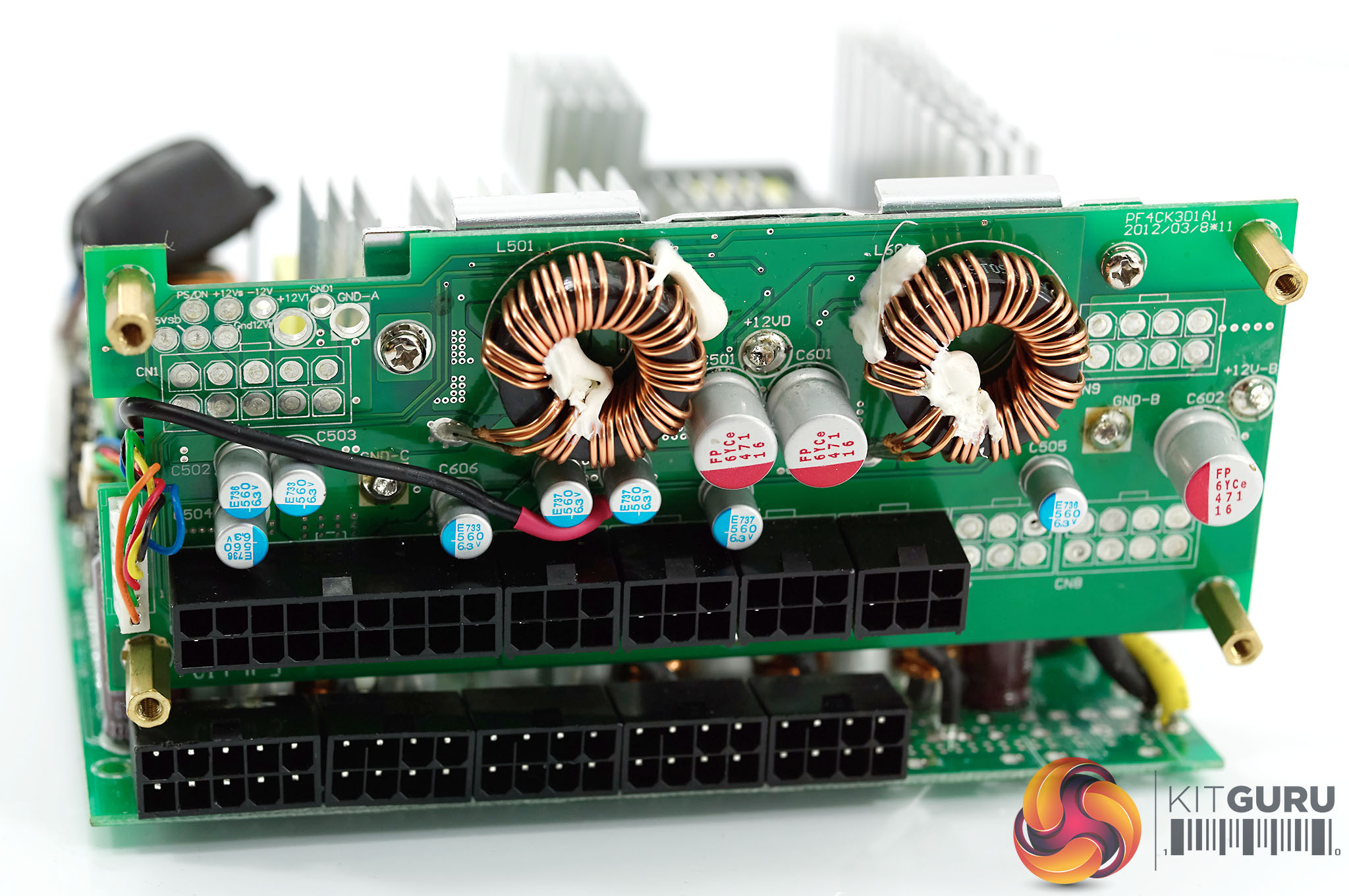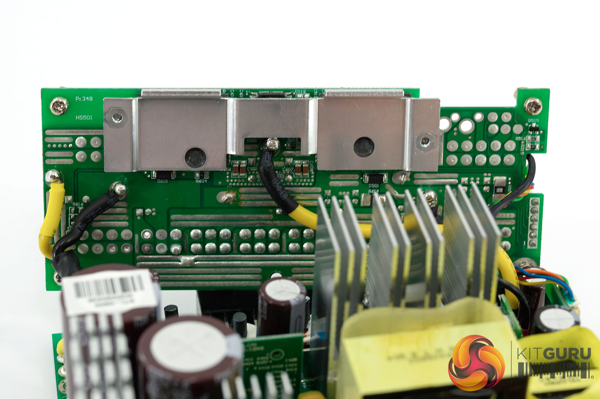 The soldering quality inside this unit is excellent, we noted nothing of any concern on the main PCB or modular boards. Even though this power supply is rated at 80 Plus Titanium efficiency levels, we notice four large heatsinks inside – this is clearly to help compensate for the lack of active cooling from above.