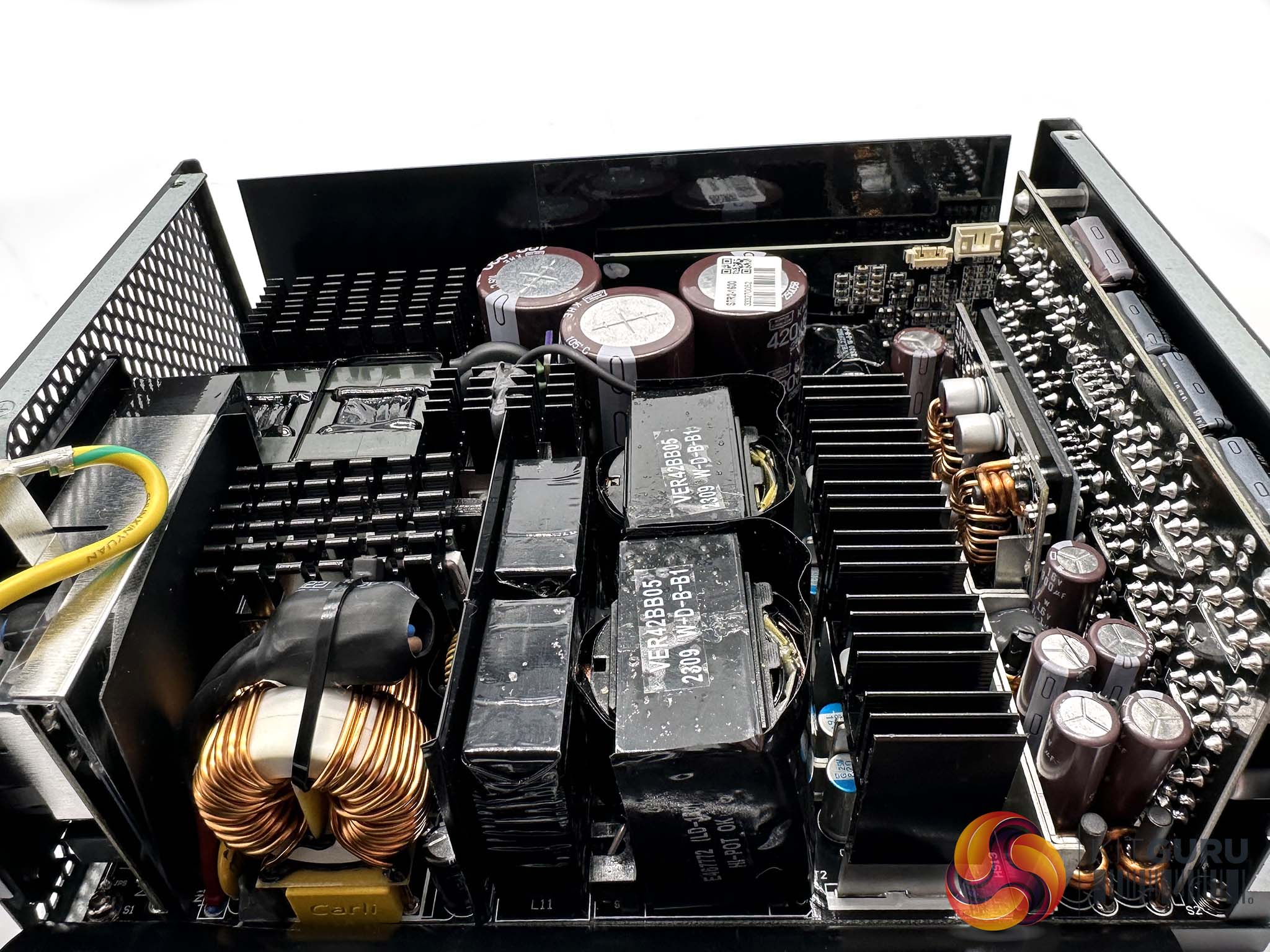 The previous version of this power supply that we reviewed in 2022 was not ATX 3.0 compatible, with a peak 2000W limit. This version has upgraded power delivery, primary stage capacitors and is capable of a 3200W peak delivery.