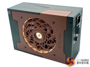 A large fan hits behind the brown grille- this will be a talking point of this particular power supply so we will get into that a bit later when we open the unit for investigation.