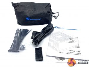 Seasonic include a regional specific power plug, literature on the power supply, cable ties and a bag of modular cables.