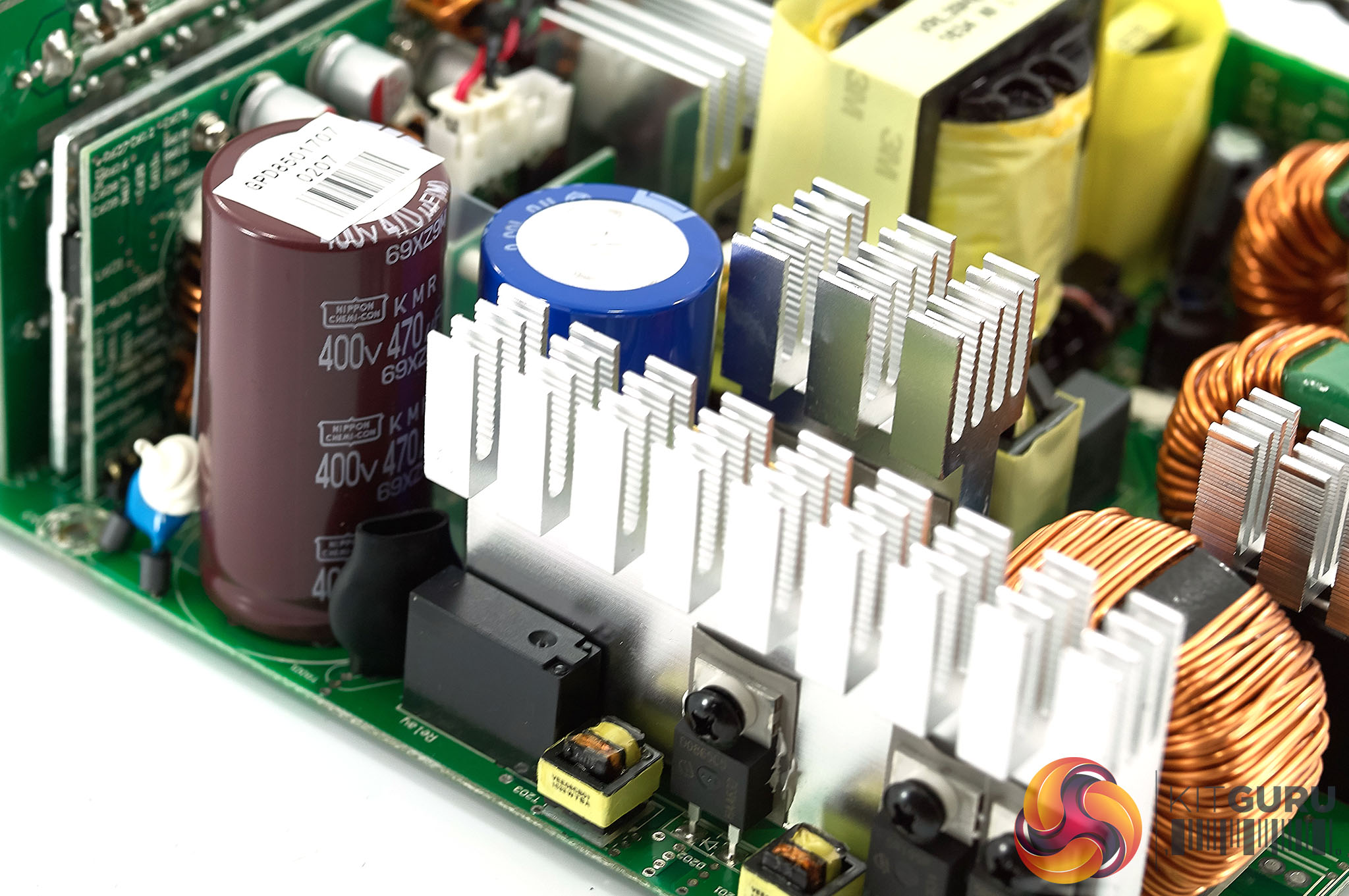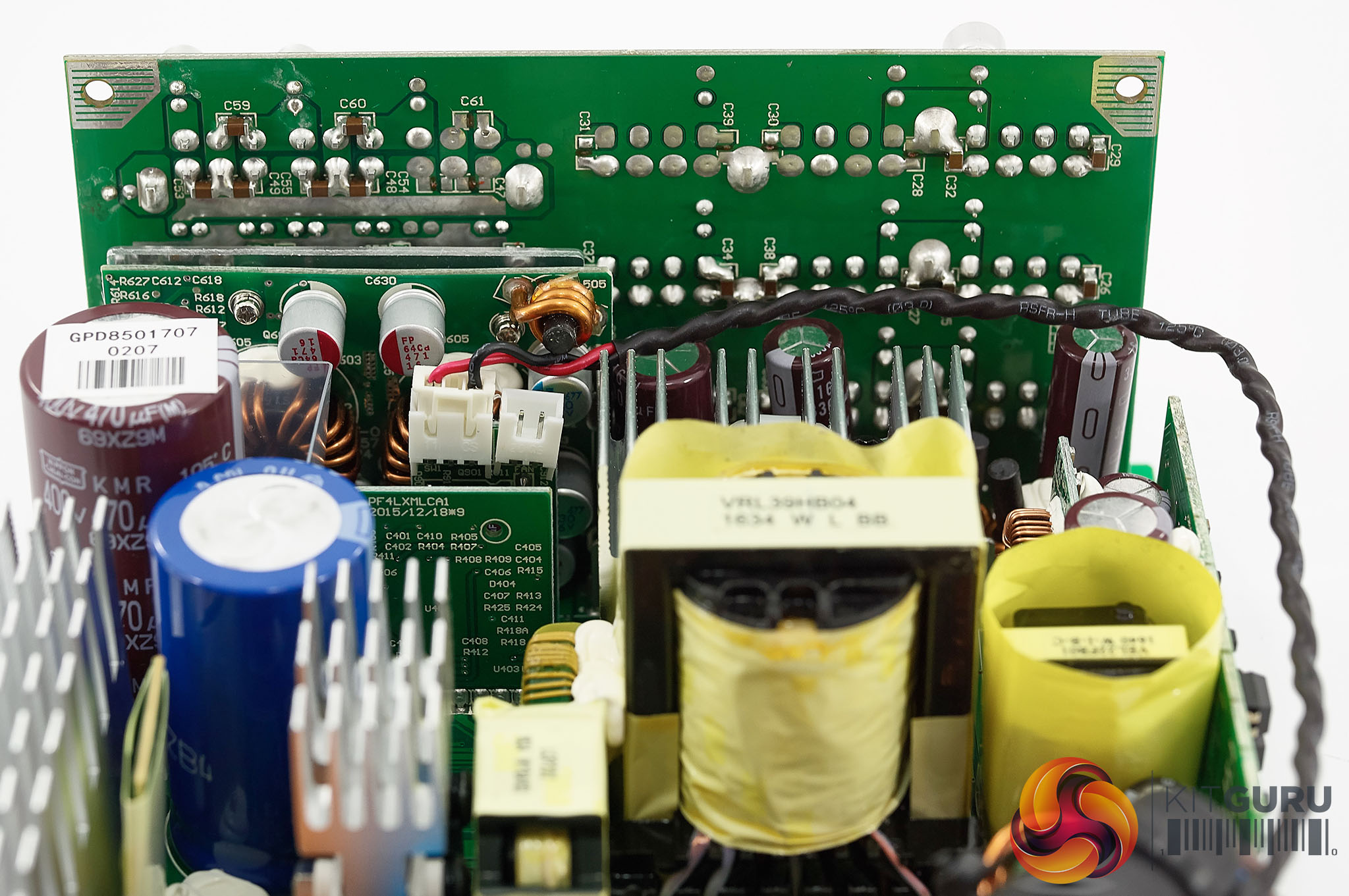 Interestingly, we reviewed the Seasonic Prime 850W Platinum supply back in March 2017 HERE and we can see that in the older non ‘Ultra' version Seasonic were using two Japanese 105c 400V 330uF capacitors. This total of 660uf has been increased in the new version of the unit we are testing today. Seasonic have in fact increased the capacity of one of the primary capacitors to 470uF with a 330uF supporting it. This brings a total of 800uF to this new version (140uF more).