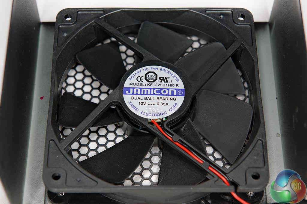 Seasonic are using a 7 blade, 120mm JAMICON Dual Ball Bearing Brushless Fan, 12V 0.35A (Model KF1225B1HR-R) in the S12G-450 power supply. These are reasonably high quality fans.