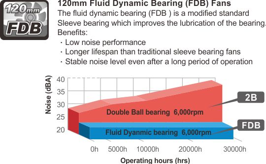 These fans not only tend to emit lower noise levels, but they are rated to last longer as well due to the lubrication of the bearing itself.