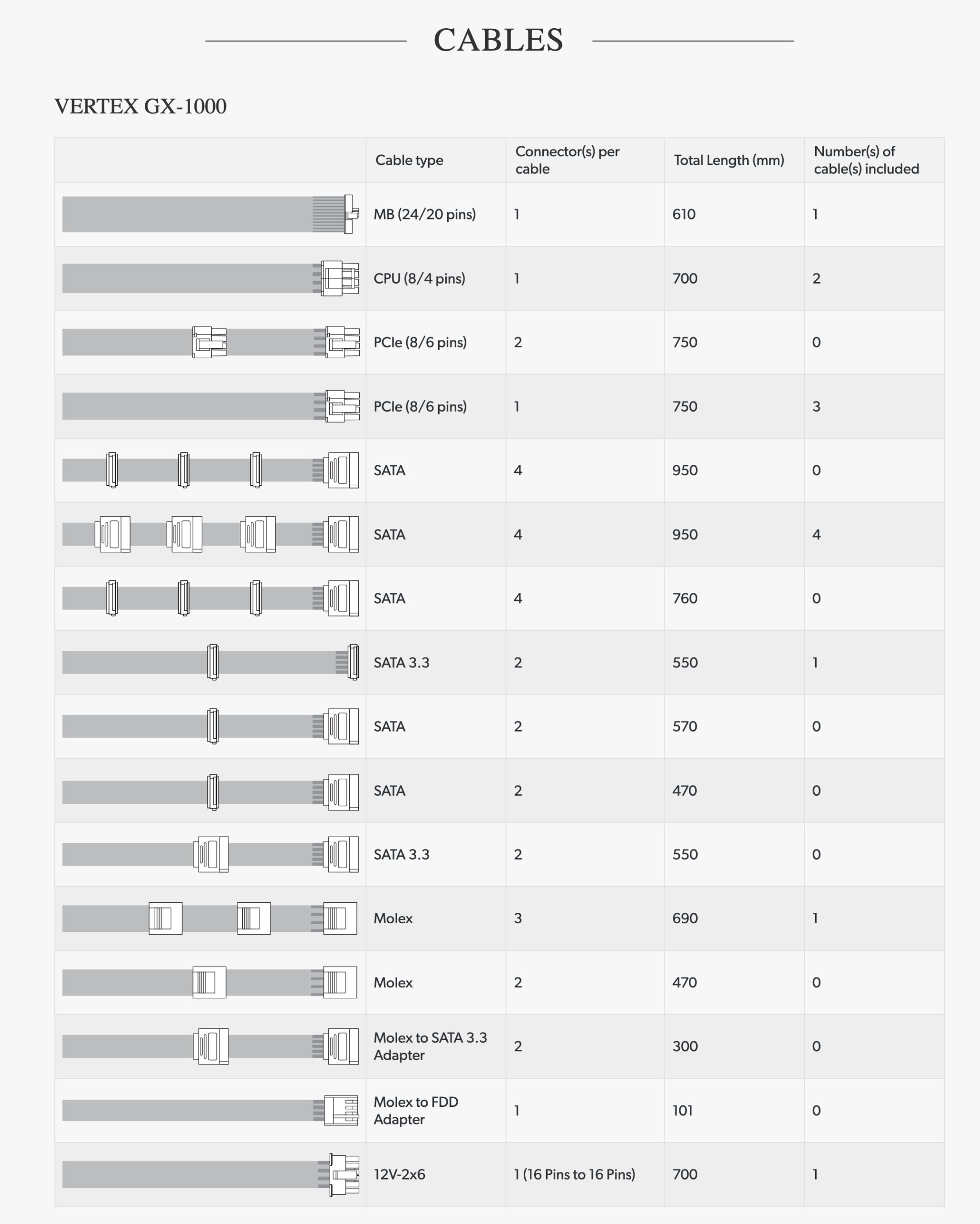 We like the individually sleeved cables that Seasonic supply with the unit, along with the cable combs in the bag to neaten up the appearance. The cable quality is excellent.