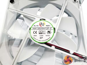 Seasonic are using a Hong Hua Fluid dynamic bearing fan in this unit, they make a quality fan – this one is a HA13525H12F-Z rated at 0.50A, 12V. The 135mm fan is rated at 50,000 hours at 40c.