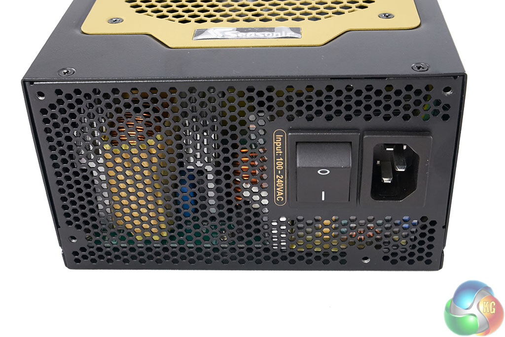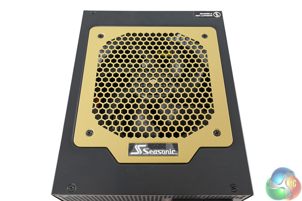 There are several rows for the modular connectors and Seasonic have labelled them clearly to aid with the build phase. There is a sticker on the right which indicates the dual switch operation of the fan – hybrid and normal. You should remove this sticker before installing the unit.