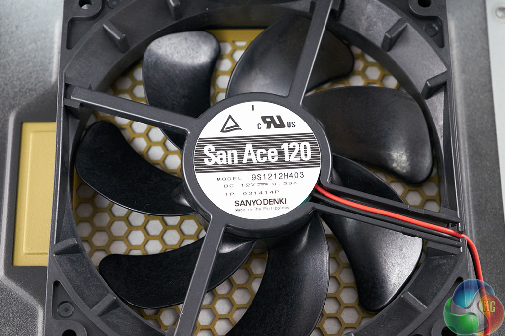 Seasonic are using a San Ace 120 (Model 9s1212h403) fan (Sanyo Denki). This is a high grade 120x120x38mm model, which operates at 12V.