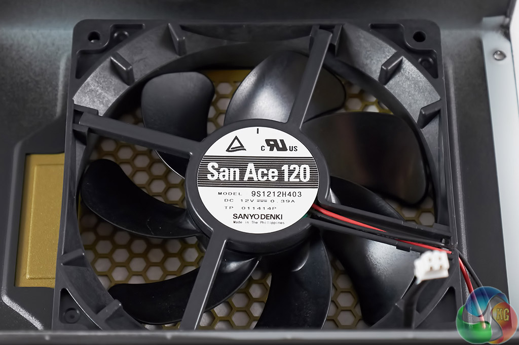 Seasonic are using a San Ace 120 (Model 9s1212h403) fan (Sanyo Denki). This is a high grade 120x120x38mm model, which operates at 12V.
