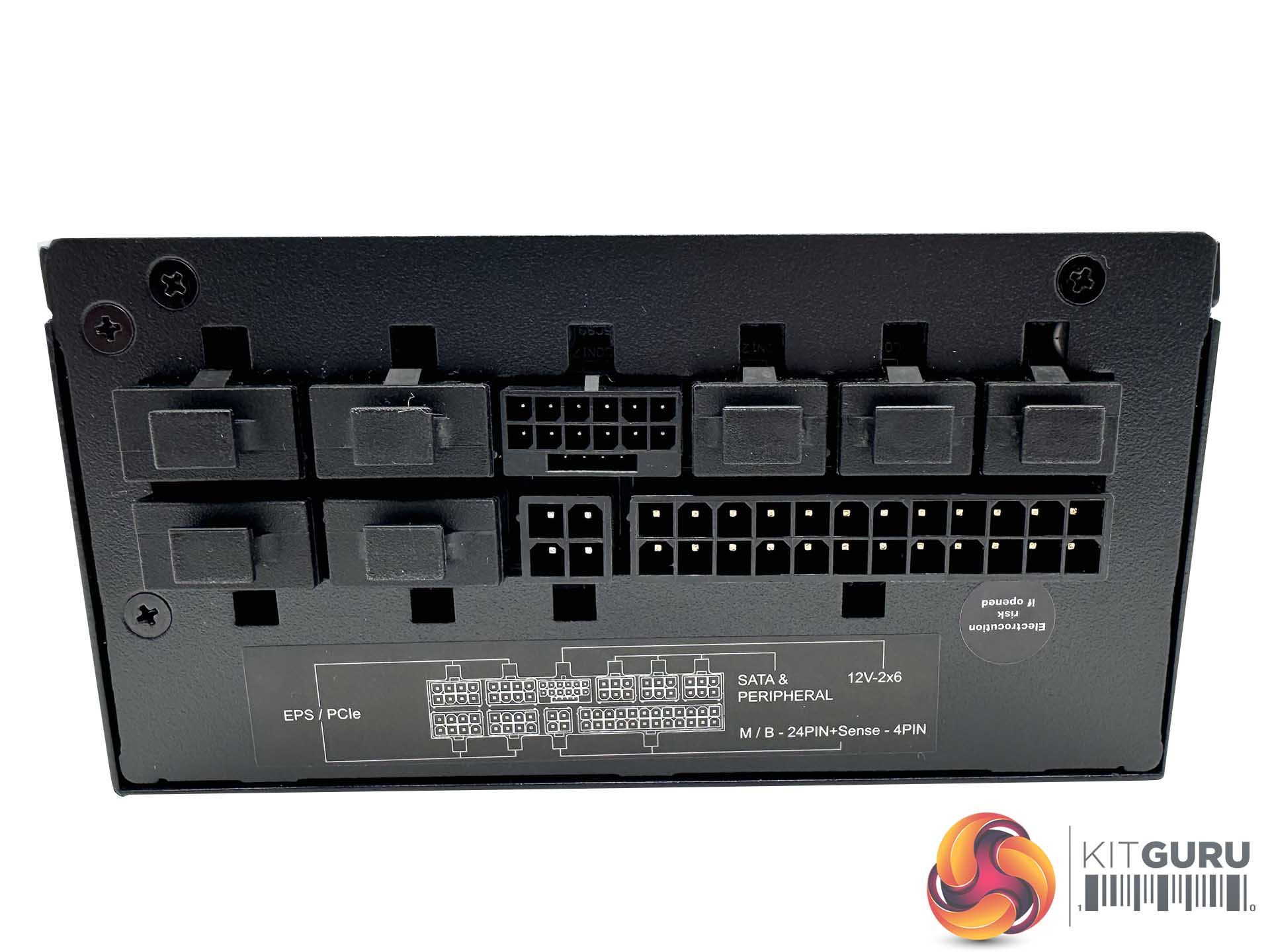 One side of the power supply is home to the modular bay, across two rows. The individual ports are not labelled, but there is a sticker underneath explaining what they are for.