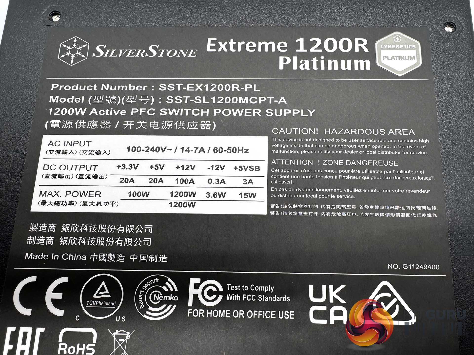 The Extreme 1200R is able to deliver 100A across the single +12 rail, and 20A to each of the secondary +3.3V and +5v rails.