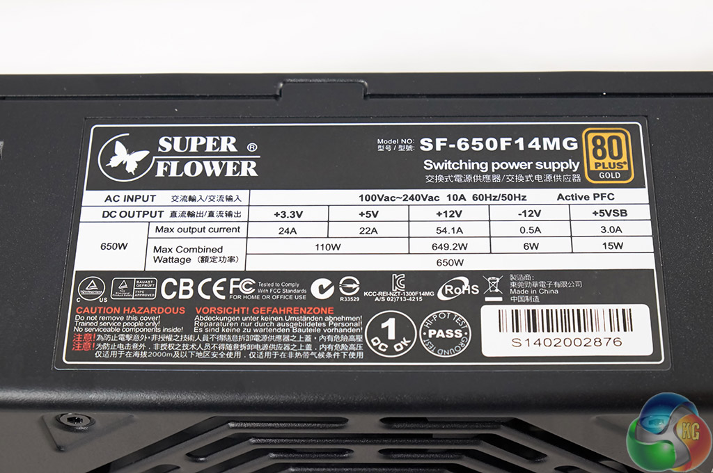 The power supply can deliver 649Watts to the +12V rail. The +3.3V and +5V rail output 24A and 22A respectively. The Bitfenix Fury 650W which we reviewed a few months ago can deliver 26A to both of these rails (although the +12V output is a little weaker – to 50A).