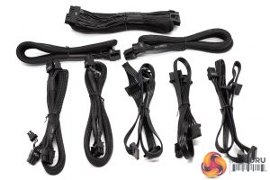 The cables are a mixture of sleeved and ribbon style – with the CPU and GPU and mainboard cables all being sleeved. The Peripheral cables are all ribbon style, flat and easy to route behind the board and to keep out of view. The cables are all high quality.