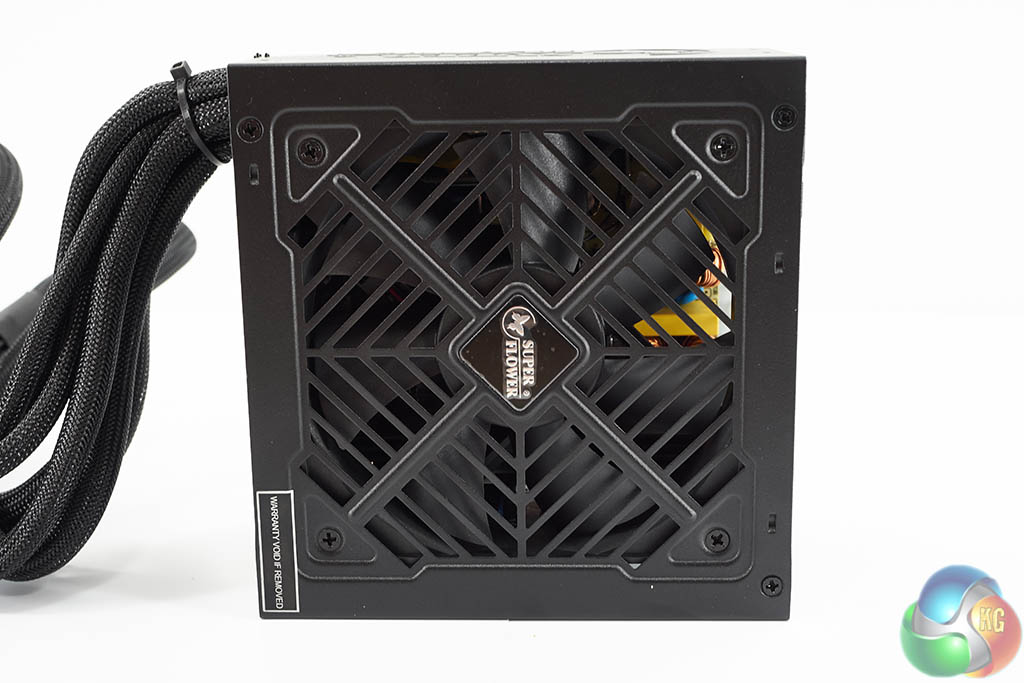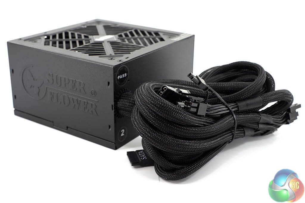 The Superflower Platinum King 650W is a very basic looking power supply with an embossed logo on the side panel.