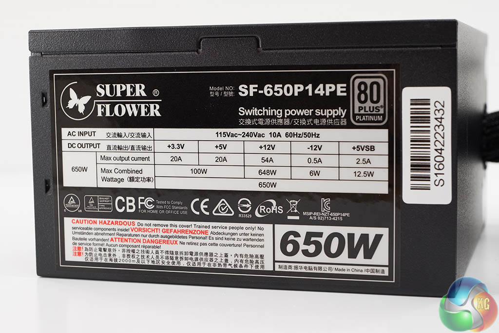 Interesting to see the model number: SF-650P14PE, this is exactly the same model number as the Super Flower Golden King 650W model.