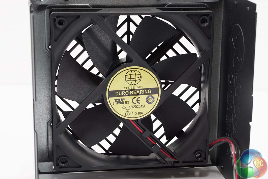 Super Flower have opted for a Globe Fan with ‘Duro Bearing', model number S1202512L rated DC 12 0.18A.