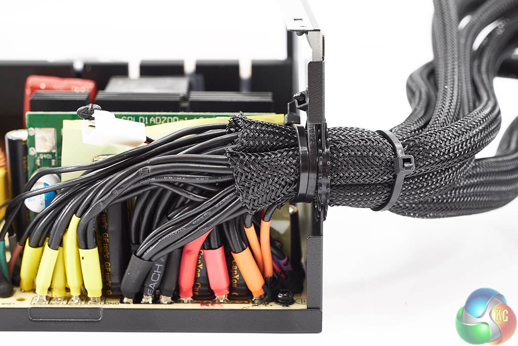 The cables are firmly tied into place and are sleeved to ensure that fraying against the metal chassis won't be a concern long term.