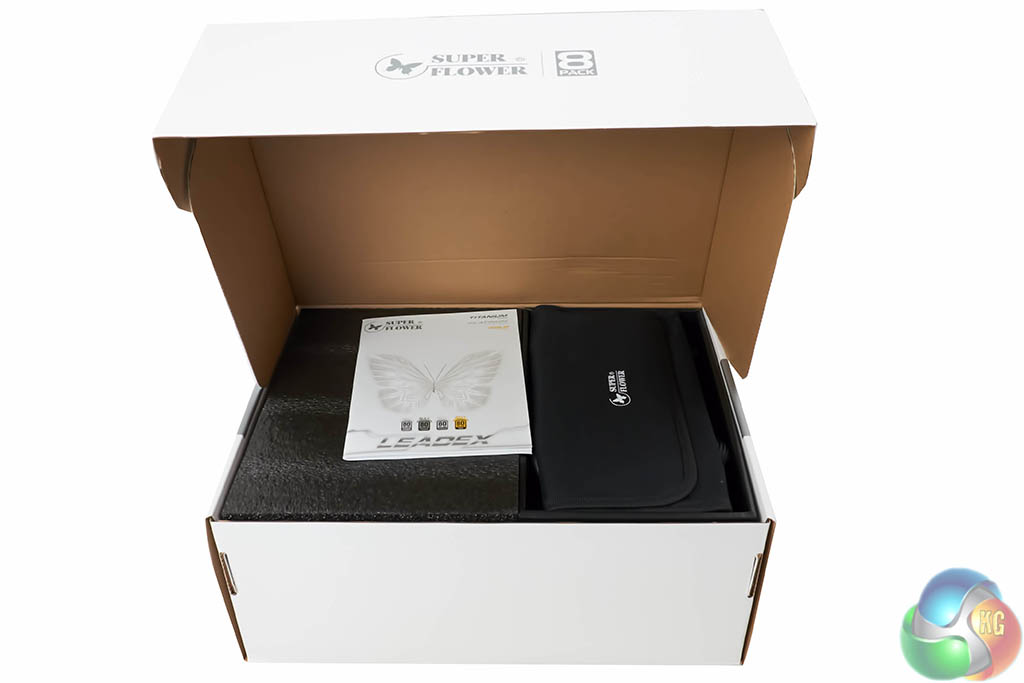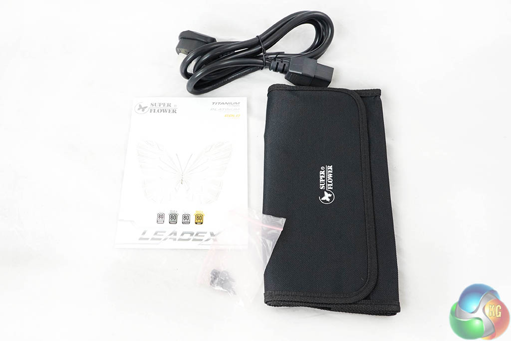 Super Flower supply a little multi language user manual, heavy duty power cable (to handle the insane power delivery), mounting screws and a storage pouch for any left over cables.